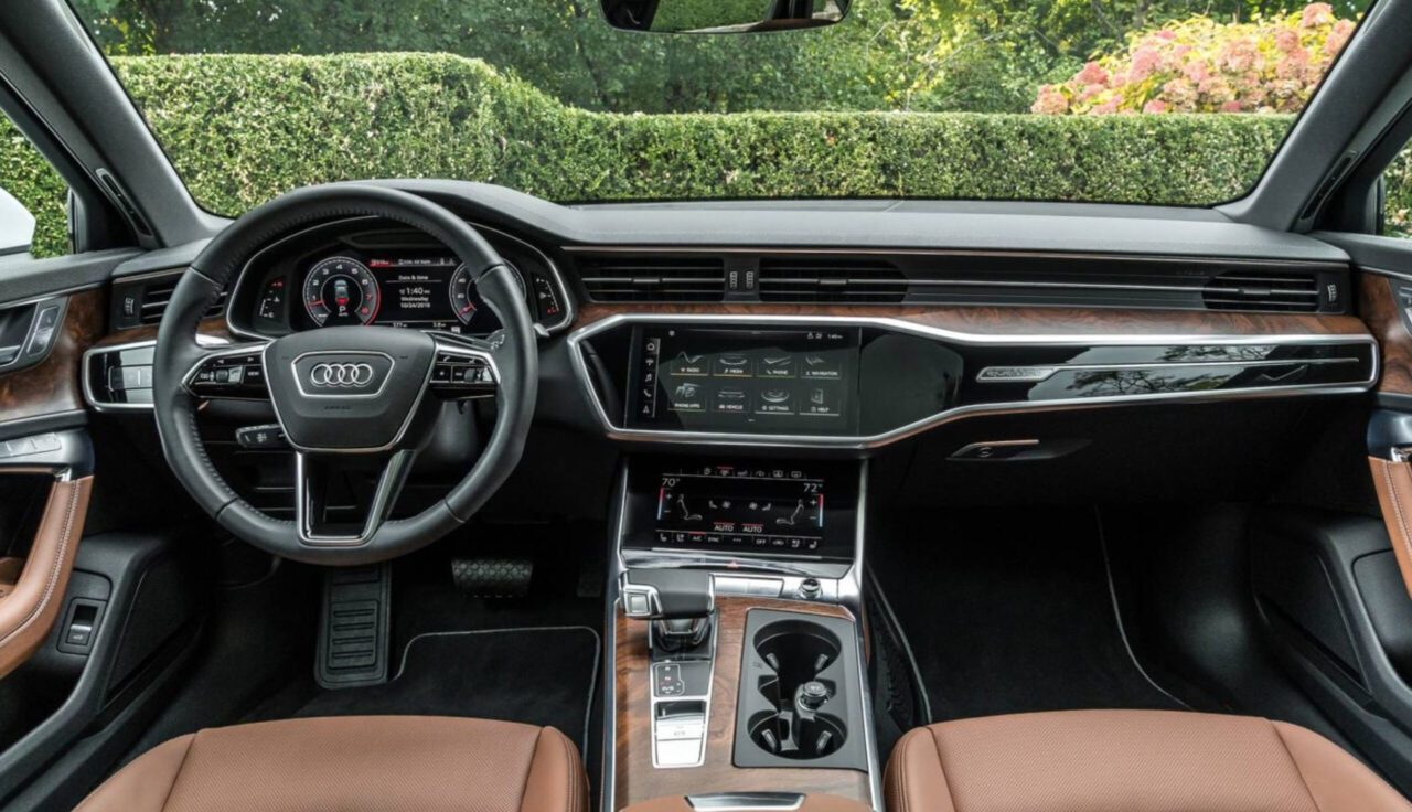 Салон A6 отличается высоким уровнем роскоши, эргономики и функциональности. Материалы отделки высокого качества и приятные на ощупь. Приборная панель оснащена цифровым дисплеем Virtual Cockpit с различными режимами отображения информации.