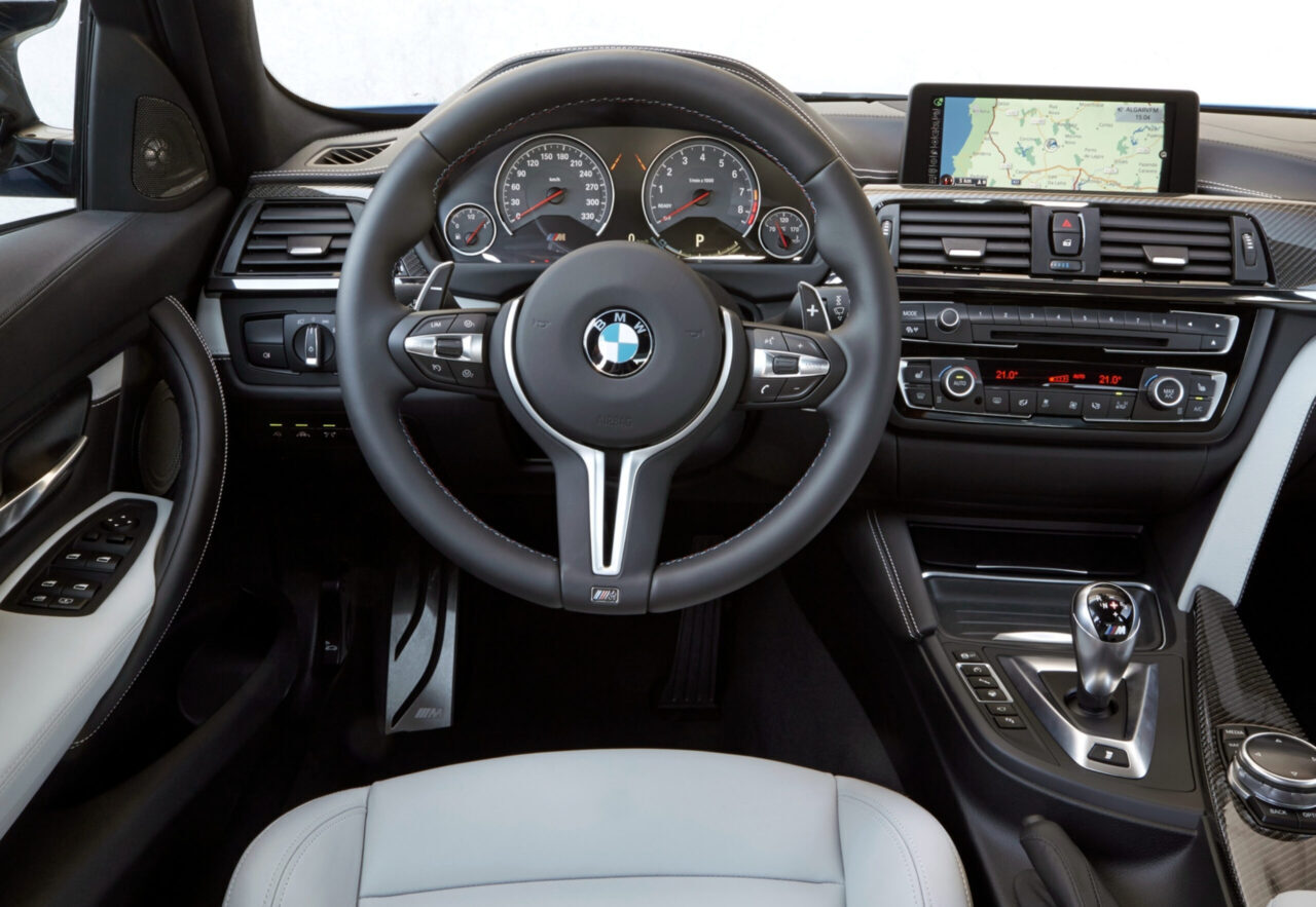 Салон Bayerische Motoren Werke M3 – это пример высокого уровня комфорта и функциональности. Машина оборудована спортивными сиденьями с электроприводом, памятью и подогревом, многофункциональным рулем с подогревом и лепестками переключения передач, цифровой приборной панелью с диагональю 12,3 дюйма, сенсорным экраном мультимедийной системы iDrive с диагональю 10,25 дюйма, климат-контролем с двумя или трех зонами, аудиосистемой Harman Kardon или Bowers & Wilkins с 16 или 20 динамиками, а также множеством других опций и ассистентов.