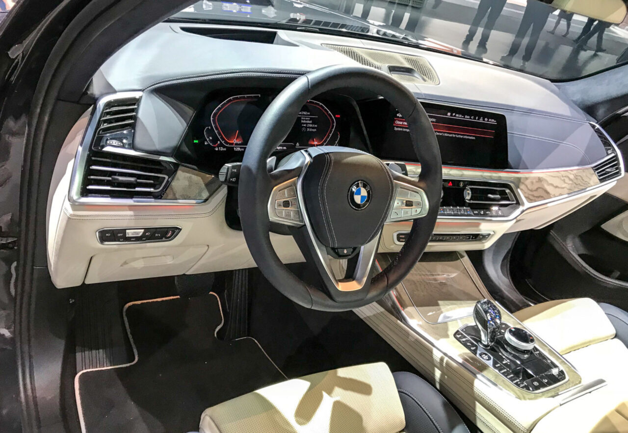 Салон BMW X7 соответствует его комфортному и пространственному характеру. Он выполнен из высококачественных материалов, таких как ткань, кожа или алькантара. В салоне просторно и уютно, есть все необходимые удобства для водителя и пассажиров.