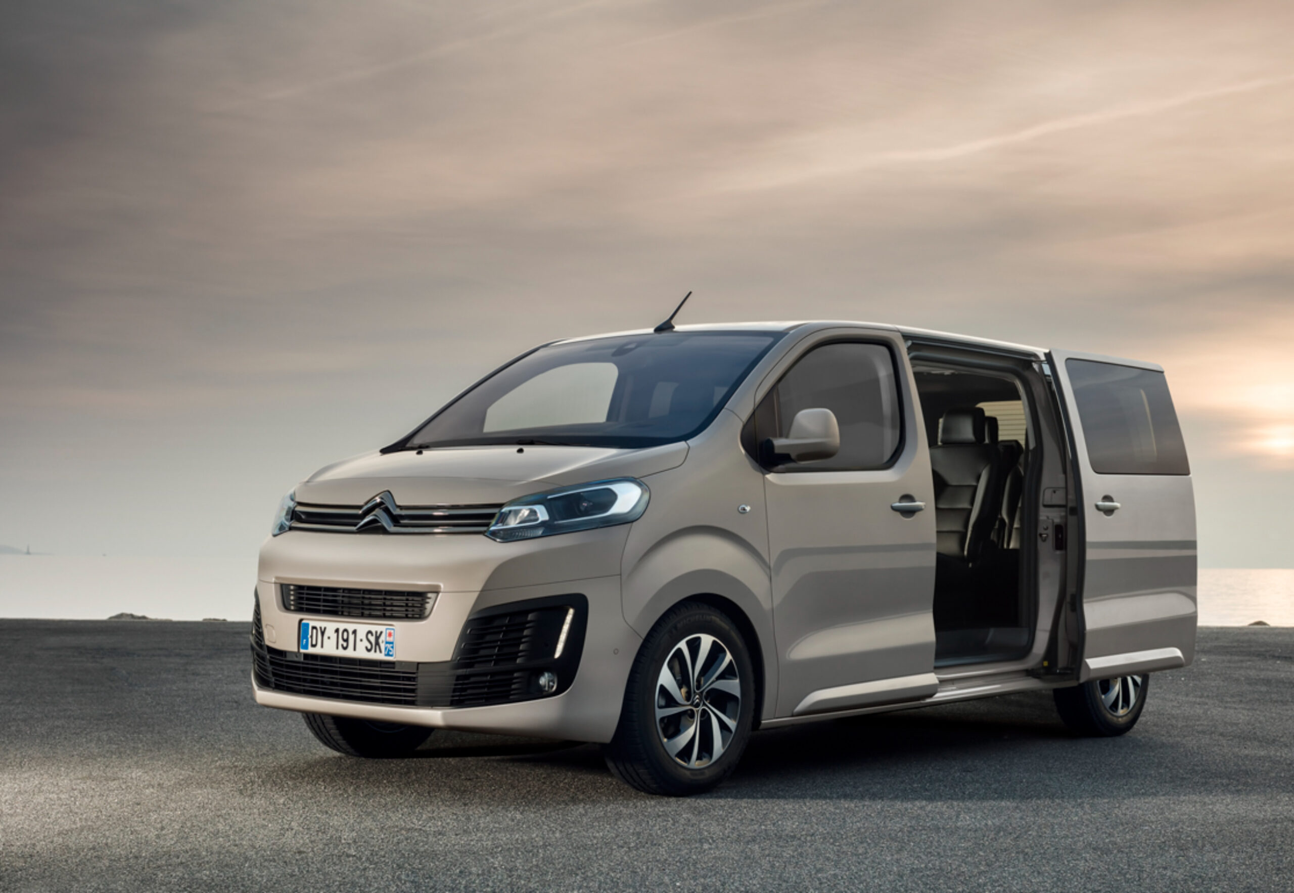 Минивэн с современным и привлекательным внешним видом, который отличается от типичных минивэнов. Автомобиль имеет строгие и четкие линии кузова, которые придают ему динамичность и спортивность. Фронтальная часть минивэна украшена характерной решеткой радиатора с логотипом Citroën и светодиодными фарами с хромированными вставками. В боковой части – большие боковые окна и раздвижные двери для удобства посадки и высадки пассажиров.