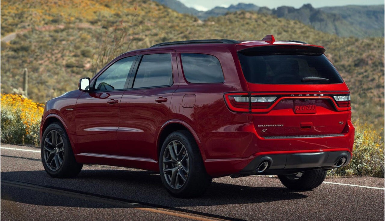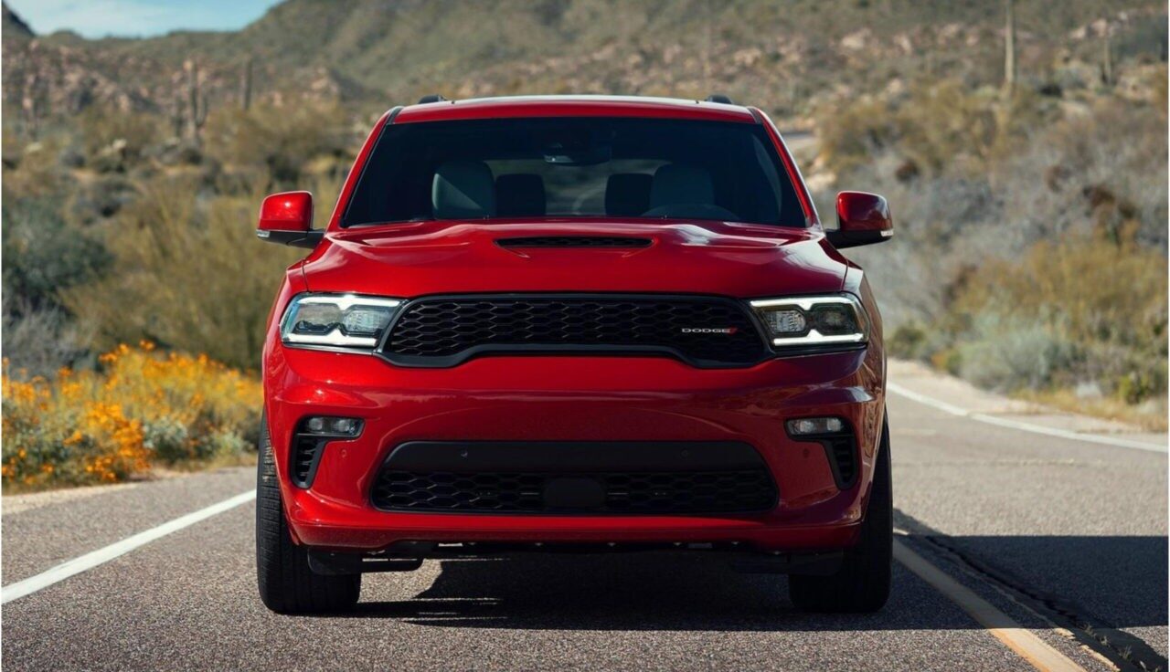 Dodge Durango отличается масштабными пропорциями, рельефными линиями и доминирующей решеткой радиатора. Автомобиль имеет высокую посадку, большие колеса и массивные бамперы. Задняя часть украшена светодиодной полосой, которая объединяет фонари. Капот скрывает мощный двигатель, который может быть виден через воздухозаборники. Dodge Durango доступен в различных цветах и вариантах оформления.