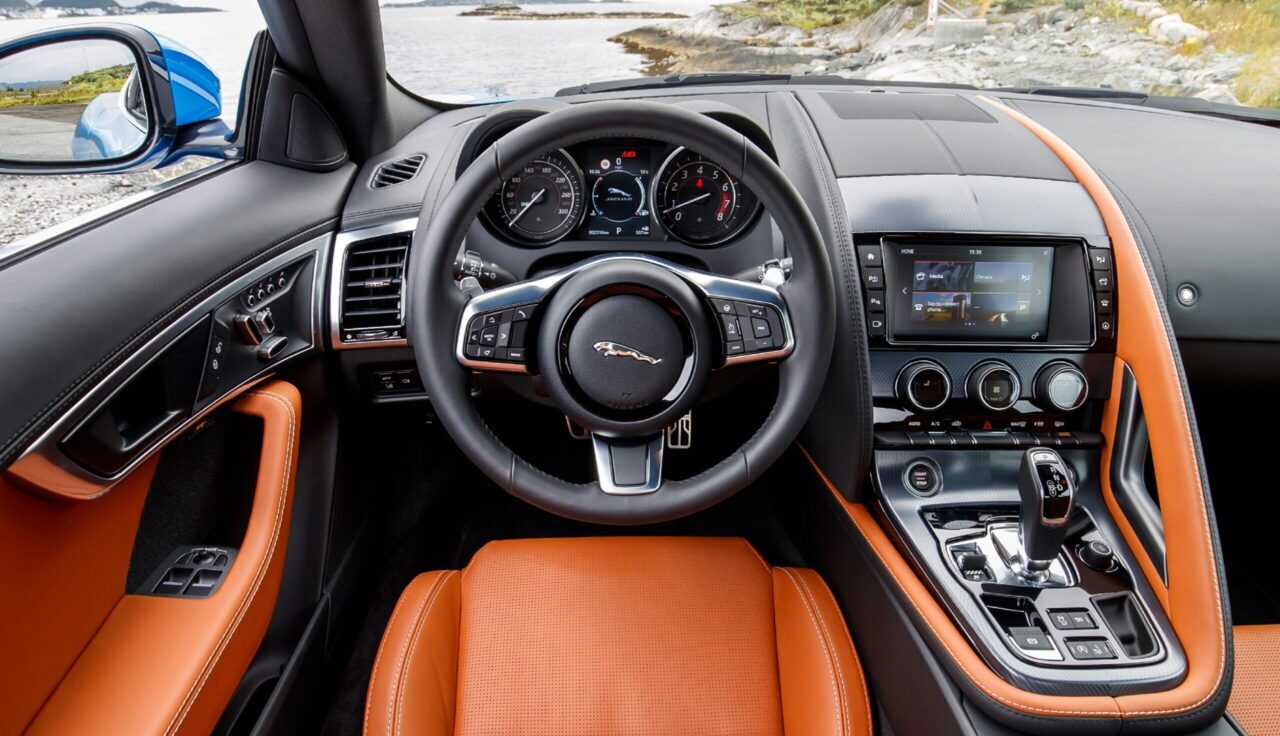 Салон Jaguar F-Type – это сочетание уюта, комфорта и технологии. Позиция водителя обеспечивает хороший обзор и удобство управления.
