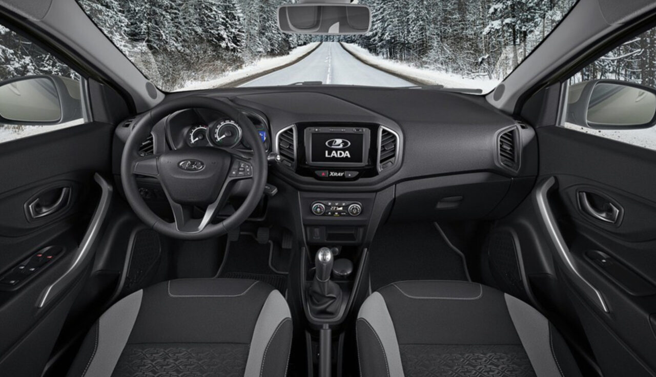 Салон Лада Х-рей отличается простотой и удобством. У машины пять мест для пассажиров и водителя, которые оборудованы регулируемыми подголовниками и ремнями безопасности. Передняя панель содержит цифровые приборы с подсветкой, центральную консоль с мультимедийной системой, климат-контролем и ручкой переключения передач. В руль включены три спицы и может регулироваться по высоте и углу наклона. Дверные карты имеют карманы для мелочей и электростеклоподъемники. Багажник вместительностью 356 литров и может увеличиваться за счет складывания задних сидений.