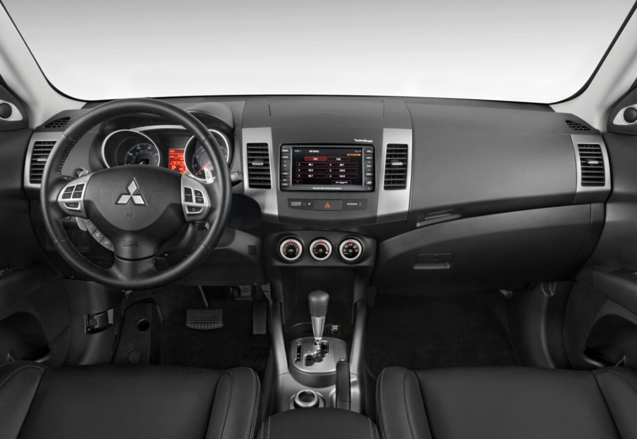 Приборная панель отличается минималистичным и функциональным дизайном с аналоговыми приборами и цифровым дисплеем на 4 дюйма. По центру расположен 8-дюймовый сенсорный экран мультимедийной системы Mitsubishi Connect, которая поддерживает Apple CarPlay и Android Auto. Система также содержит навигацию, Bluetooth, USB-порты и 6-ти колоночную аудиосистему. Управление мультимедийной системой осуществляется при помощи поворотного контроллера на центральной консоли или голосовых команд. На центральной консоли также находятся кнопки выбора режимов езды, стояночного тормоза и системы автоматического удержания на месте.