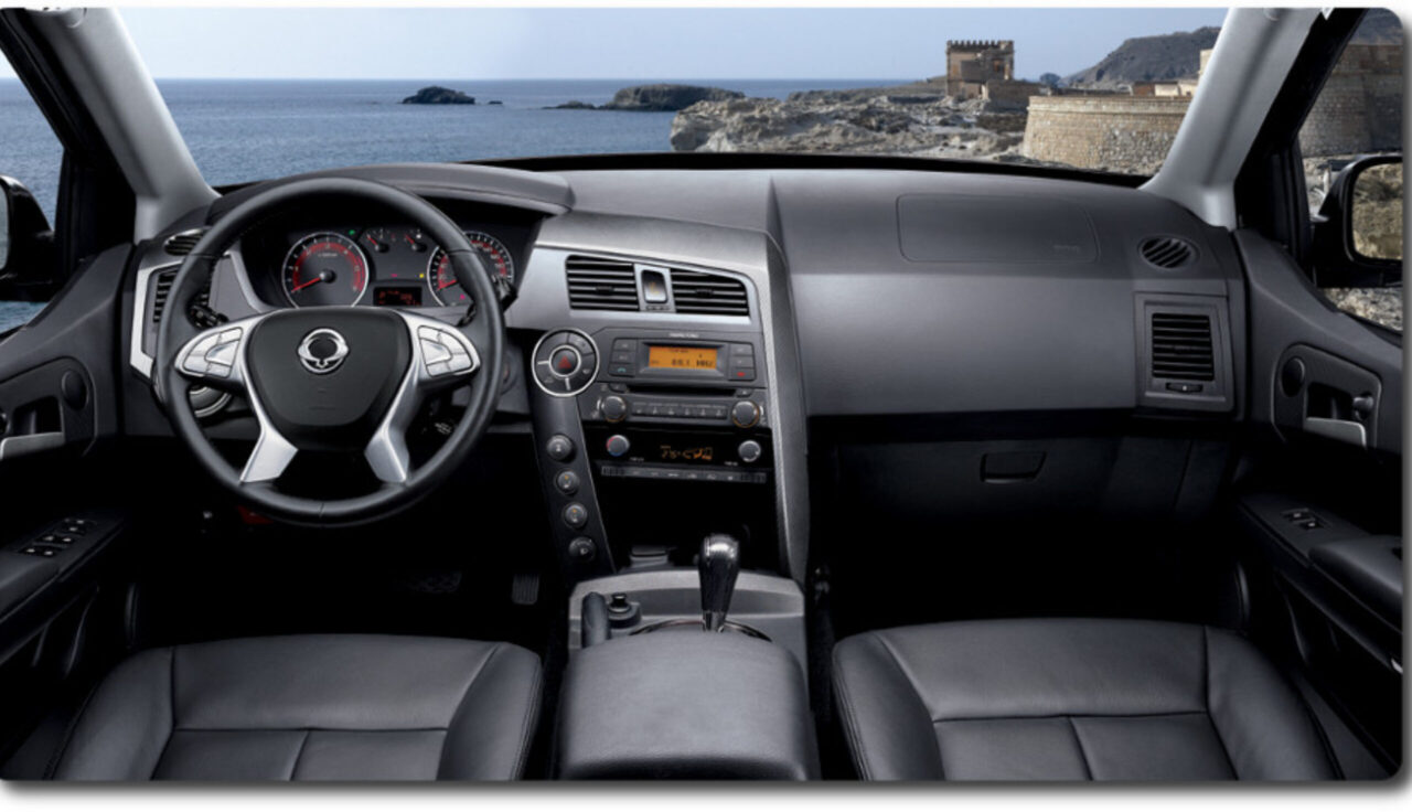 Комфортный и технологичный салон Санг Йонг Корандо может вместить до пяти пассажиров. Сиденья эргономичной формы, регулируются по высоте и наклону, а также есть подогрев и вентиляция. Верхняя комплектация кроссовера с кожаной обивкой сидений и электроприводом передних сидений с памятью настроек водительского сиденья.