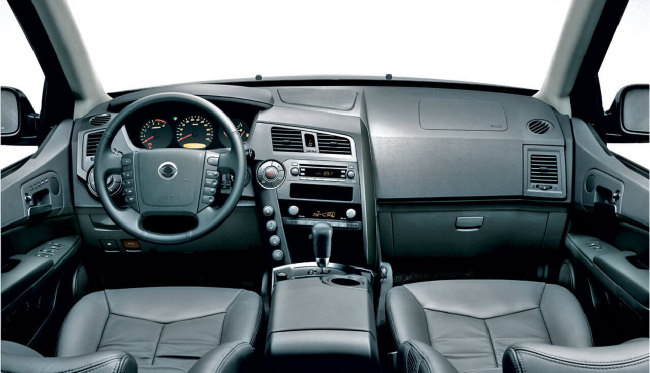 Санг Йонг Кайрон предлагает комфортабельный и функциональный салон, который может вместить до 5 человек. Салон выполнен из качественных материалов и имеет эргономичный дизайн. Приборная панель с синей подсветкой и легко читаемыми приборами.