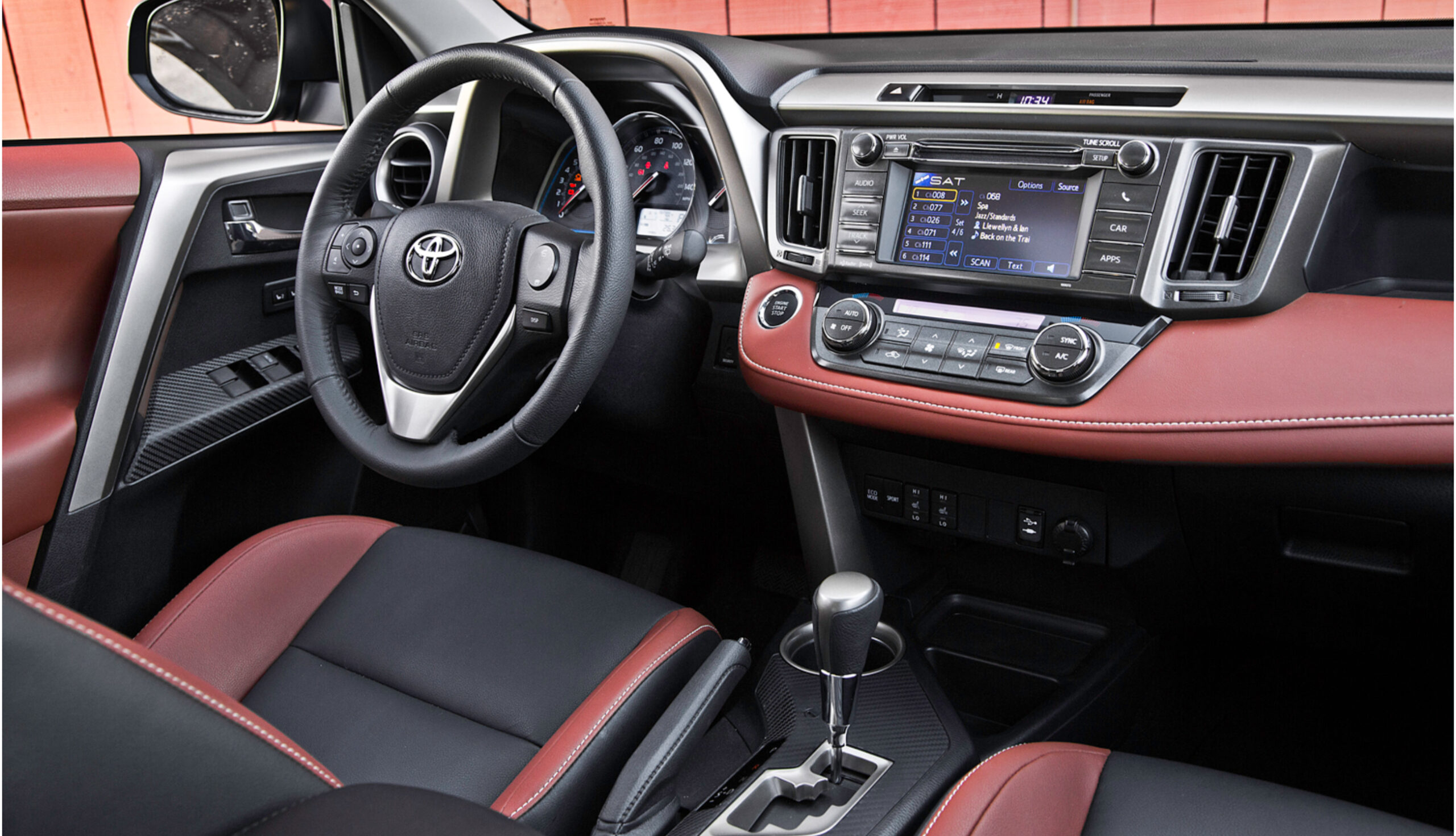 - Комфорт – улучшенная версия с бензиновым двигателем 2.0 л (171 л.с.) и вариатором, передним или полным приводом, 17-дюймовыми легкосплавными дисками, электроприводом багажника, датчиками света и дождя, климат-контролем, камерой заднего вида, системой доступа без ключа и кнопкой запуска двигателя, подогревом передних сидений и руля, системой безопасности Тойота Safety Sense (TSS). Цена – от 1 999 000 руб.